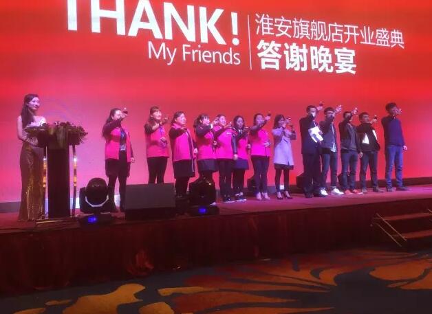 3月26日,《瓷磚也瘋狂》蘇北聯動暨淮安旗艦店開業活動,震撼落地!活動當天,來自淮安、連云港、南通、鹽城等地的廣大業主朋友們與安又琪粉絲們不僅可以親臨巔峰音樂盛會現場聆聽安又琪的迷人歌聲,還可以享受前所未有的勁爆價格優惠,買到優質有保障的瓷磚,最后還有定制豪禮、名牌家電瘋狂送。當天晚宴上,圣德?;窗步涗N商王總更發表了激情澎湃的《擁抱未來,堅定前行》主題演講,王總在演講中表揚并高度認同開業期間淮安家人們所獲得的成績,同時表示,圣德保淮安旗艦店才剛剛開啟篇章,需要每一位淮安圣德保人爭做智勇雙全的戰士共創新輝煌!
