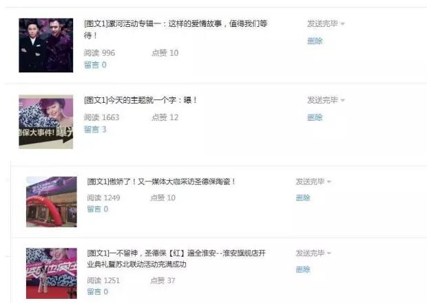 2-3月發布文章數量:35篇,基本達到平均每天一篇文章,更新速度快,能夠第一時間把圣德保當天的新聞當天發送,閱讀量1000以上的 11篇,基本全面覆蓋經銷商人群。